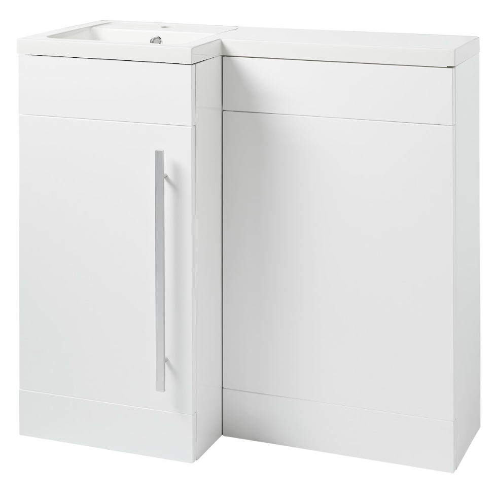 K Vit Matrix 900 Single Door L-Shaped Furniture Pack 900mm Cistern Included White Gloss